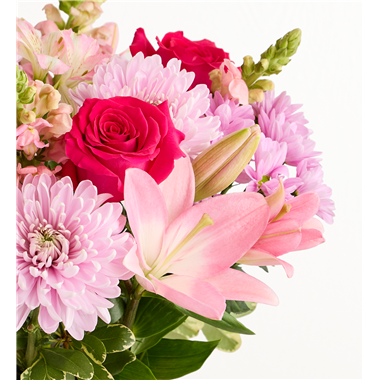 Thank Mom for a lifetime of comforting hugs with our Mother’s Embrace™ bouquet. Lovely pink and lavender blooms are hand-designed in a pink ceramic vase, creating a heartfelt expression of your feelings whether you're celebrating Mother’s Day together or sending a smile from miles away.
